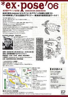 お知らせが遅くなってしまいましたが、印刷博物館P&Pギャラリーで現在開催中の「粟津潔展 expose '06」の案内チラシ&ポスターの制作をお手伝いさせていただきました。デザインは粟津デザイン室による制作で、私は文字回りを整えたり、DTPデータとしての仕上げの部分を担当しています。私がお手伝いさせていただいたのはほんのちょっとですが、とてもいいものが仕上がって、すごく満足しています。