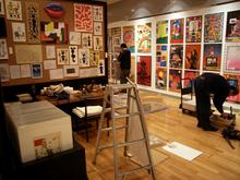 展覧会は昨日から始まったのですが、その二日前、会場設営時に覗きに行ってきました。以下の写真は、その設営中の秘蔵映像(!)です。(くれぐれも転載などしないでくださいね)