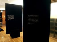 会場展示の中で、私は↑このパネルの文字部分の版下を作らせていただきました。これは黒い布の上にシルクスクリーンで印刷してあります。近頃はこういう展示の文字などは、インクジェットのプリントや、カッティングシートの切り文字で済ませてしまうケースがほとんどなのですが、この文字はあえてシルクスクリーンの手法を選んでいます。そうすることで文字の質感、存在感が圧倒的に違ってくるのです。