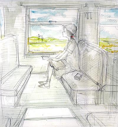 とっても素敵な絵ですね。車窓の景色が動いて行くようです。