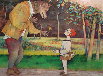 文字がいっぱいになったのでオマケの絵です。サイトのギャラリーに掲載してるのとは別バーションの「赤ずきん(習作)」。大学3年生のときの絵です。色を使うことの苦手意識が、この頃を契機に変わっていった気がするのです。