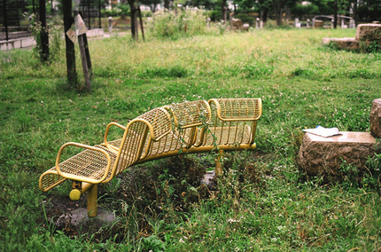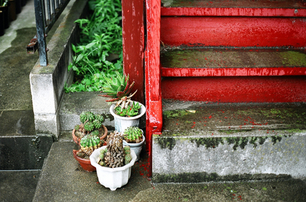 赤い階段。雨に滲んで、よけいに赤く見える。
