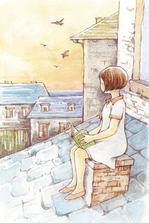 爽やかな風が吹き抜けていくようで、素敵なイラストですねー。何の本を読んでいるのかな?