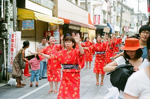 先々週の写真です。中野駅に向かって新井薬師を歩いてたら、エイサー「中野チャンプルーフェスタ」(中野エイサー祭り)のパレードに、偶然出会いました。威勢のいいかけ声と、熱のこもった舞い、そして色彩のコントラストが鮮やかな衣装。大勢の観客と一緒に、しばらく見入ってしまいました。