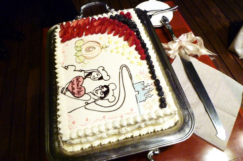 お二人が一緒にデザインしたというウェディングケーキ。幸せ一杯の表情があふれているお二人を見ていて、こちらまで心があたたかくなりましたよ。末永く、お幸せに〜♪