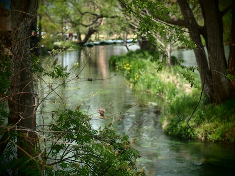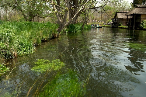 調子に乗ってボートにも乗ってみたり。園内を流れる清流を、ちょっとだけ移動するだけなんだけど、なかなか楽しい体験でしたよ。川の水が澄んでて、川底まで見通せます。水草が鮮やかな色彩を放って揺らいでました。