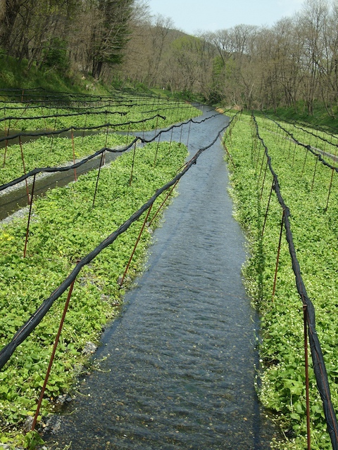 中に入ってみると、広大な敷地一面に広がるわさび畑!想像してた以上に美しい景観。。すっかり気分が高揚してしまって、カメラを持ってあちこち歩き回ってひたすら写真撮って楽しんでました。