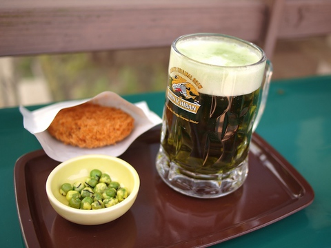 園内には美味しいものもたくさん。これはわさびビールとわさびコロッケ。コロッケは、まぁ普通(笑)。ビールは美味しかった。あんまりわさびの味はしないけど。(したら大変か??)