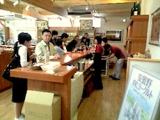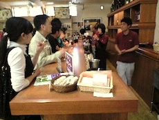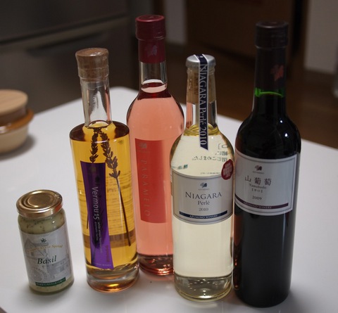 試飲のコーナーで、最初に「NIAGARA」という銘柄のワインを勧めていただいて、その美味しさにびっくり! フレッシュな風味だけど、とてもしっかりした味わい。マスカットに似た甘い香りがグラスから強く立ち上ってきます。葡萄種固有の風味を活かした、とてもバランスのいい白ワインだと思った。そのあともたくさんの種類を飲んでみたけど(かなりの量を飲ませていただきました...笑)、最初に飲んだ「ナイアガラ ペルレ 2010」が私は一番美味しかったな。それと、15種類のハーブをブレンドしてつくった「ベルモ15」というリキュール酒がとても気に入りました。