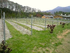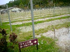 これがその葡萄畑。ここを見ていたら醸造責任者の戸川英夫さんがたまたま立っていらっしゃったので、この葡萄畑の飲み頃について聞いてみたら、「本当にいいものつくれるようになるのは、10年後くらいになるんじゃないでしょうか」と語ってくださいました。「それじゃ、その時まで待ってますね」と言ったら、「まぁそう言わず何度も来てくださいよ」と笑っておっしゃってました。この葡萄畑が成熟する日を楽しみに待ちながらも、ここで作られるワインをこれからずっと注目していたいです。また安曇野へ遊びにくる楽しみが増えました。