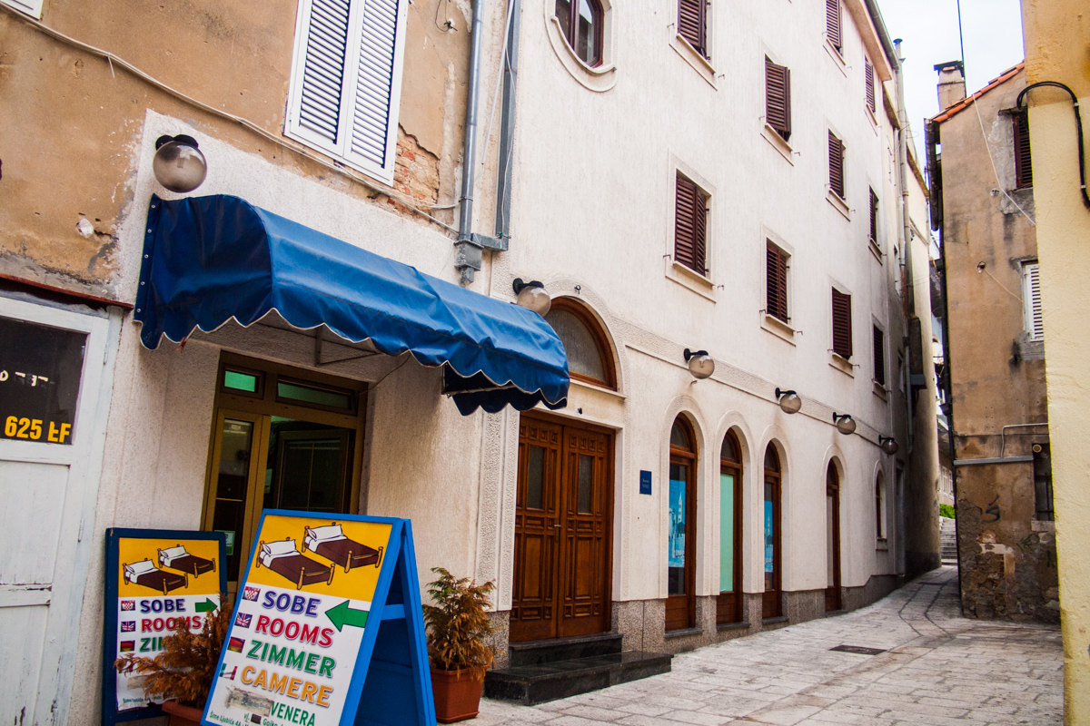 この左側の白っぽい建物が私の泊まった宿。予約サイトではHOTELと書いてあったけど、現地での看板はSOBE(クロアチアでは民宿や貸部屋を「SOBE」と言う)。狭いけど、安くて居心地良い部屋でしたよ。
