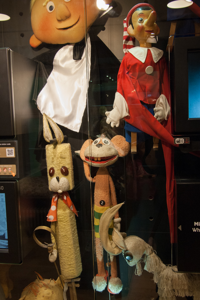 各年代事にパペットたちが分類されており、展示ボックスにはタッチパネルなども設置してあって、その人形のプロフィールを音や映像を交えて楽しく紹介しています。