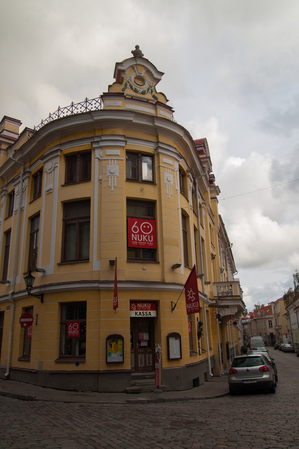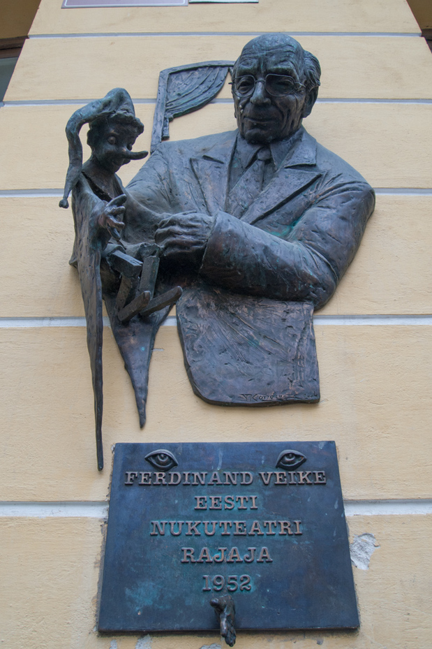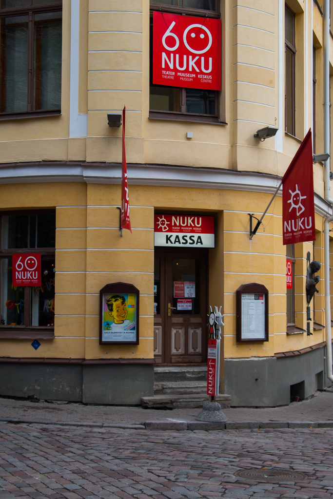 旧市街を歩いていたら、ふと、この銅像に足が止まりました。人形はピノキオでしょうか?碑文には「FERDINAND VEIKE」という名前が刻まれています。「なんだろう?」と気になって建物の入口へと回ってみると、そこは「NUKU」というエストニア国立の人形劇場でした。FERDINAND VEIKEは、この劇場の創立者だったのです。