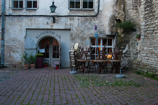 タリンでの最後の晩餐は、前日に歩いたカタリーナ通りにある「KLOOSTRI AIT」というレストランに行ってみることにしました。このお店のことは、ラトビア在住の日本人ご夫婦に教えていただたのです。扉のガラス窓から中を覗くと、客は地元の人ばかりなう雰囲気で、正直すごく躊躇したのだけど、思いきって入ってみました。