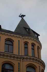ふと上を見上げると、屋根の上に可愛い猫の姿が。。これは有名な「猫の家」。裕福なラトヴィア商人の家だったそうです。大ギルドに加わりたいのに、ドイツ人が支配的なギルドには入れてもらえず、怒った彼がその腹いせとして、ギルドの会館に猫のお尻を向けて取り付けたのだそうです。。。なんとも可愛らしい「報復」ですね(笑)。