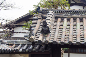 通り沿いの民家の瓦の形状が、ちょっと面白い。