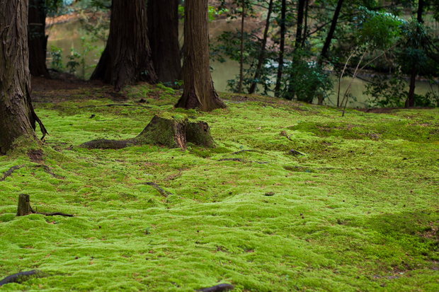 開山御廟へと続く細道には豊かな苔が生い茂っていて、その色鮮やかな緑の絨毯が、ひと際心に残りました。