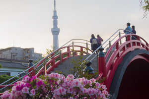 亀戸天神の「藤まつり」に行くのは、この時がはじめて。「満開の藤棚は本当に見事だけど、身動きできないほどの大変な人の賑わい 」と聞いていました。覚悟して行ったのですが、境内に入っても思いのほか閑散としてるので「おかしいな?」と思っていたら・・・
