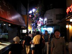 細い通りにびっしり商店や出店が並び、子どもたちからお年寄りまでたくさんの人で溢れている。華やかな飾り物があちこちに揺れ、通りには威勢のいいかけ声が飛び交い、店先には焼き鳥、コロッケ、お豆腐、お寿司などなど、様々なお惣菜が出揃い、そして人々の笑顔と活気・・・もう、楽しい気分にならずにはいられない。通りをただ歩いているだけで、気持ちが明るくなるひとときでした。