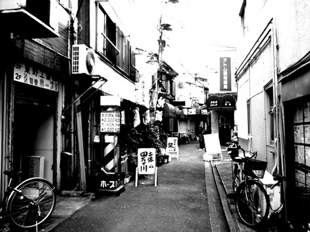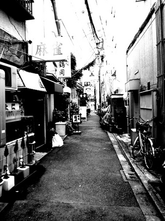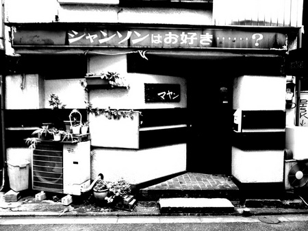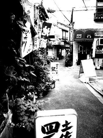 ムーンロード 東中野にあるムーンロード。昭和のどこかの時点で、時間が止まってるようです。一度どこかのお店に入ってみたいのですが、濃過ぎて足を踏み入れられません。 「シャンソンはお好き・・・?」の文字が怖いんですけど・・・。 前の記事 次の記事 コメント モリッスィー 2006年9月27日 10:45 無人な感じも不思議な雰囲気を作っている一因かもしれませんね。 マヤン…… yamazo 2006年9月27日 19:47 通りを歩いていてこんな細い路地を見つけるとつい誘われてしまいますね。区画整理された無表情の街とは対極の人間の匂いがする生きた街・・・という感じがします。 もしジャムさんと撮り歩きをしたらこんな所でワケの分からないものばかり熱心に撮ってて端から見るとかなり怪しげな二人に見えるんでしょうねぇ(笑) *ミトン* 2006年9月27日 20:19 昔の日本映画の世界みたい! 岸田今日子さんみたいなママさんが出てきそう! モノクロっていいですね。 今度私も白黒フィルムを買って写真を撮ってみようっと♪ あっ・・もちろんアナログ一眼レフですけどね(^^: エヌガール 2006年9月27日 23:34 なぜかマヤン、はいったことあるの思い出しました! スッテキなイラストのコースター、もちかえってます☆ 高齢な(?)挿絵画家らの集まりで、連れててもらったのだったと思います。ピアノあって、シャンソン聴いたっけです。 エヌガール 2006年9月27日 23:35 マヤンなぜかいったことが。。。コースターもってます。 ロッキー 2006年9月28日 06:25 たまんないですねぇ、こんな横町。 四万十川! 鮎の塩焼きと、川音の想像だけで一升いけそうです。 会社とはまた違った仲間が出来るのが魅力ですね! もっとも、30代くらいで暖簾をくぐると、出来上がった常連に説教されてしまうパターンに、どうしても落ち着いてしまうのですが。 なを 2006年9月28日 10:16 色を感じるのが不思議です。 ついでににおいも。 よこやま 2006年9月28日 14:05 >モリッスィーさん 私は人物撮るのが下手なもので、ついつい人を外して撮ってしまいます。 白黒写真にしてみたのはモリッスィーさんの影響かもしれませんね(笑) ここ面白いので、ぜひ写真撮りに行ってみてください。マヤンも。 よこやま 2006年9月28日 14:10 >山造さん 路地のある町っていいですよね。あ、この町はちゃんと生きてるって思います。最近死んでるような、生活感のない町が多くなってつまらないです。 やっぱり雑多なものがたくさん残ってる町であって欲しいです。 山造さんと撮り歩き、いつかぜひやってみたいですね。 変なものばっかり撮ろうとして、住んでる人達に煙たがられそうだけど(笑) よこやま 2006年9月28日 14:16 >ミトンさん この路地のお店になら、岸田今日子いても全然不思議じゃないですよね。 一度入ったらもう出て来れないお店かもしれないけど(笑) アナログの一眼レフ、ぜひ使って上げてください! やっぱり銀塩のカメラには、デジタルではどうやっても表現できない質感があると思います。モノクロなら、FUJIのISO感度100とかのフィルム使うといいと思いますよ。写真撮ったら日記にアップしてくださいね。 よこやま 2006年9月28日 14:20 >エヌガールさん ええっ、このお店に入ったことがあるんですか!?びっくりです。 あ、でもお話伺うと、とても由緒あるお店のようですね。失礼しました(笑) きっとたくさんの人に愛されてきた、素敵なお店なんですね。 でも誰か案内がないと、なかなか飛び込みでは入れないですよねー。 よこやま 2006年9月28日 14:25 >ロッキーさん 鮎の塩焼き・・・!!! 最近なぜかずっと、美味しい鮎の塩焼きを食べたいって思っていたのです。 このお店だったら食べさせてくれるのかなぁ。今度覗いてみよう。 私は20代前半の頃はオヤジが集まる赤提灯の店に、一人で飛び込んで行ったりしてました。で、議論したり、説教されたり、好き勝手やってましたねー。今考えると、「生意気なくそガキ」(笑)って常連客は思いながらも、あたたかく接してくれたんだなーって思ったりします。 よこやま 2006年9月28日 14:27 >なをさん モノクロームの世界って不思議ですよね。 無彩色の世界なのになぜか温かみを感じたり、見えないものが見えてきたり。 そんな絵を描いてみたいなぁって、ずっと思ってるのですが。