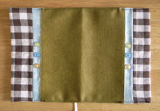 きぃぼうさんの作品は、どれもこだわりと愛情に満ちています。生地の柄や色の選び方、組み合わせ方がとても個性的で面白いと思うのです。ハンドメイドであっても、どっかの既製品を真似たようなものもたくさん見かけますが、きぃぼうさんの手作り小物はそれらとは違って、しっかりと個性を主張する作品に仕上がってると思います。今のところはレディースのデザインが中心ですが、このブックカバーのように、男性でも欲しくなるものがこれからたくさん生まれてくるんじゃないかと楽しみにしています。
