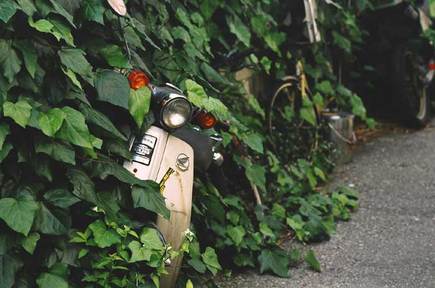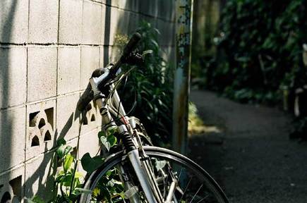 草むらに分け入って行こうとするネコの後ろ姿にデジャヴを感じましたが、よくよく思い出してみると敬愛する藤原新也の写真に似てました。ネコじゃなく女の子ですが(笑)前回の抽象的モノクロとは打って変わってまばゆいほどの色彩、そして具体物。日陰の路地の湿って苔むしたブロック塀。夏の到来を感じさせます。
