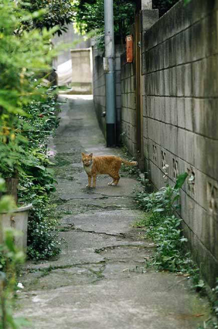 路地のひび割れ具合といい、シッポの警戒具合といい、物語があって良いですね~♪