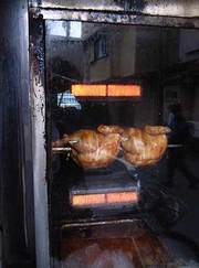 この商店街の中に、ちいさな鶏肉専門店があります。その店頭で、なんとローストチキンを焼いているのです(ローストチキンって言い方であってるのかな?)。それがなんとも食欲を誘う光景で、先日通りがかりで思わず買ってしまいました。
