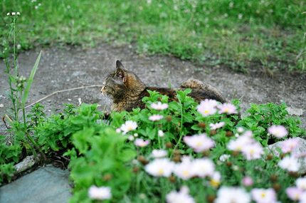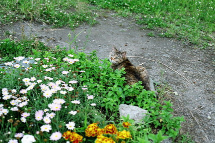 本当にカメラ目線ばっかりですね。きっと猫の世界でのトップモデルさんなんでしょうね。それにしても自然の緑がすっごくきれーーー!