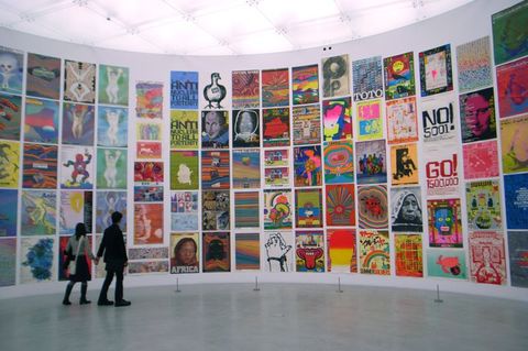 今回の『荒野のグラフィズム:粟津潔展』は、21世紀美術館所蔵の約2600点の粟津潔作品コレクションから、1500点という膨大な点数の作品が展示されました。2年前に、東京文京区の「印刷博物館」でも『粟津潔展 EXPOSE '06』(→その時の記事)が開催されたのですが、今回はそれよりはるかに大きな規模の展覧会。まず展示室に一歩足を踏み入れて、壁面いっぱいに展示された作品数と、そのスケールに圧倒されました・・・。目眩がするような気分で、しばらく呆然と作品を見上げてしまいました。
