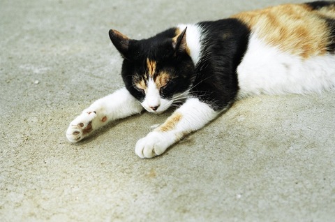またいろいろと宿題が溜まってるのですが、日中は暑すぎて何もできないのでカメラを持って散歩に出ました。そして、またのびてるネコたちに出会いました。