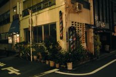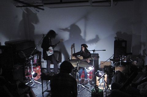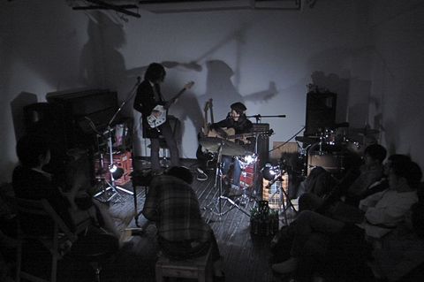 会場は中央区八丁堀にある「七針」というアートスペース。オルタナ系を中心にライブ会場として使われる他、展覧会や映像作品の上映会等もやっているそうです。古びたビルの地下にあるのですが、以前は倉庫か何かだったのだと思います。下に降りて行く入り口の引き戸が、強烈なインパクトでした…。とても不思議な空間。1階は理髪店なのですが、その古びた具合が、また味があって素敵でした。