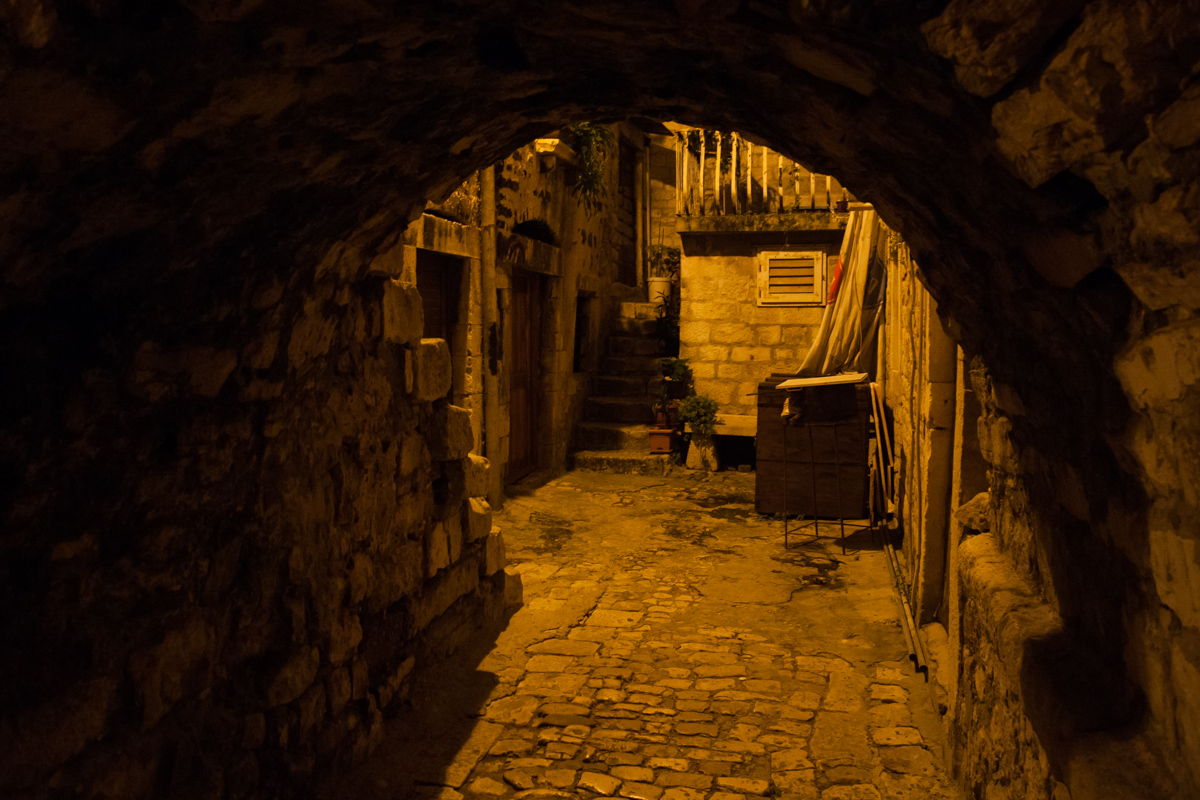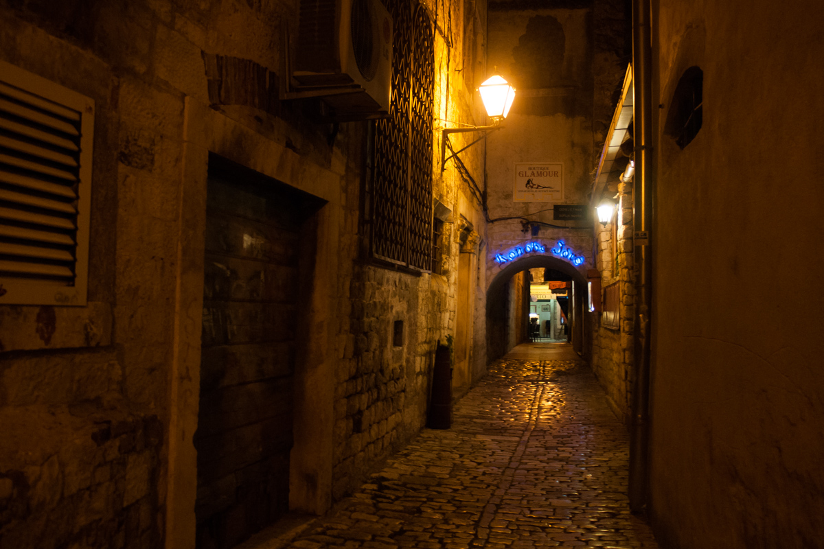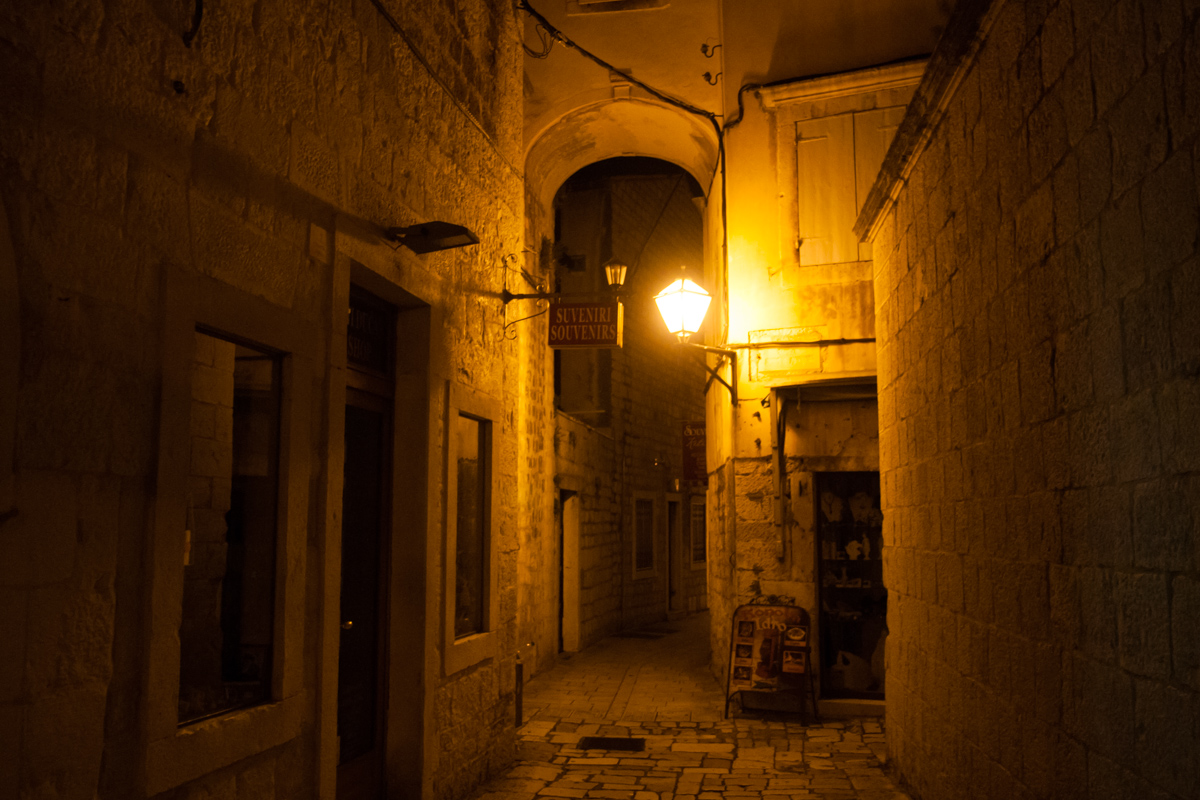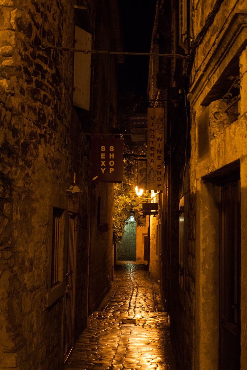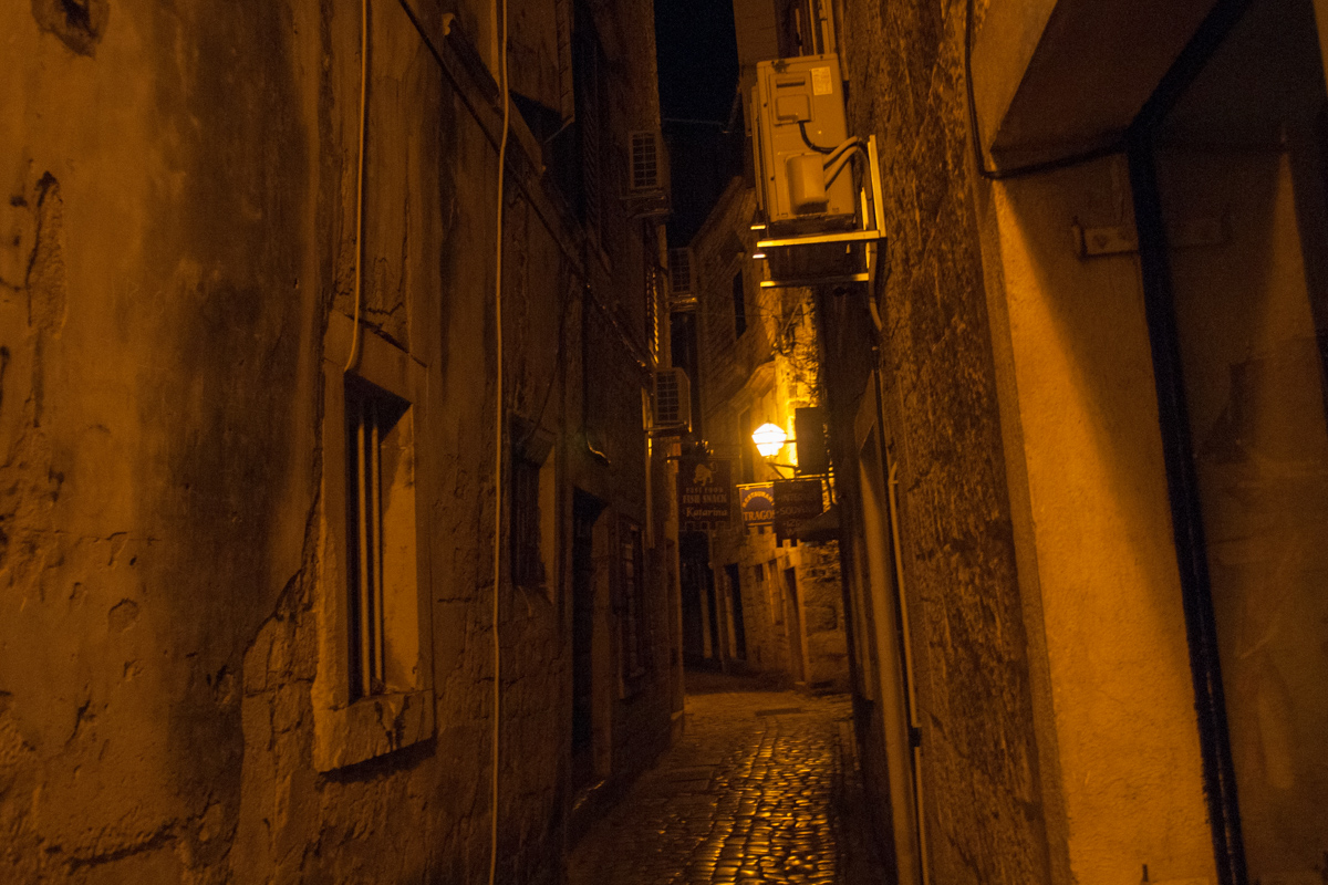 食事の後にもう一度旧市街をぐるりと散歩。トロギールは治安が行き届いてるようで、夜歩きしてもまったく危ない気配を感じない。夜の11時も過ぎるとほとんどの店は閉まり、客引きのお姉さんもみんないなくなってました。