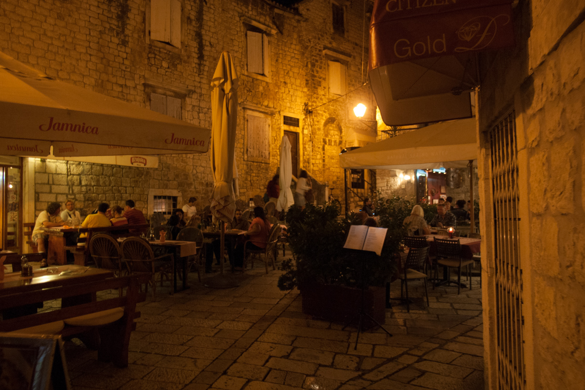 トロギール旧市街は東西に500メートル、南北に300メートル程度のこじんまりとしたエリア。街を一周してだいたい様子がつかめたところで、やっとこの日の夜ご飯。
