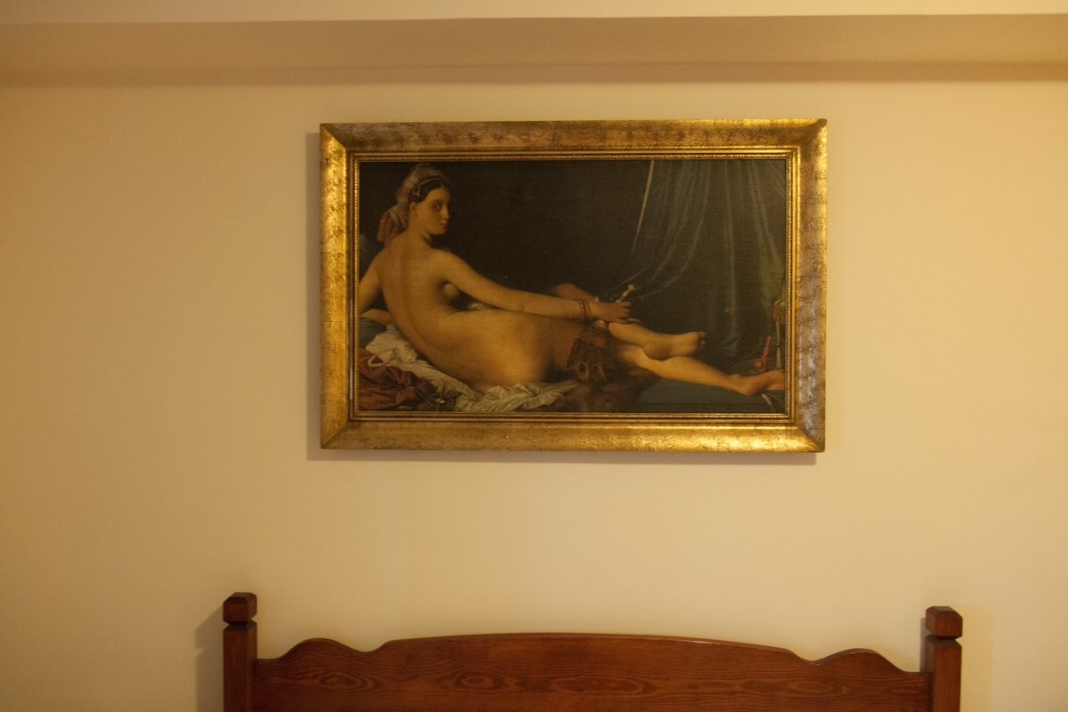 どうにか宿へ到着できて一安心。オーナーファミリーがあたたかく迎えてくれました。家の一室を間借りさせてもらったうような、アットホームな雰囲気の部屋。ベッドの上には、アングルの「グランド・オダリスク」が飾ってありました。なかなかいいセンス。