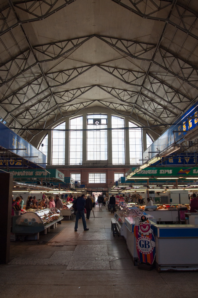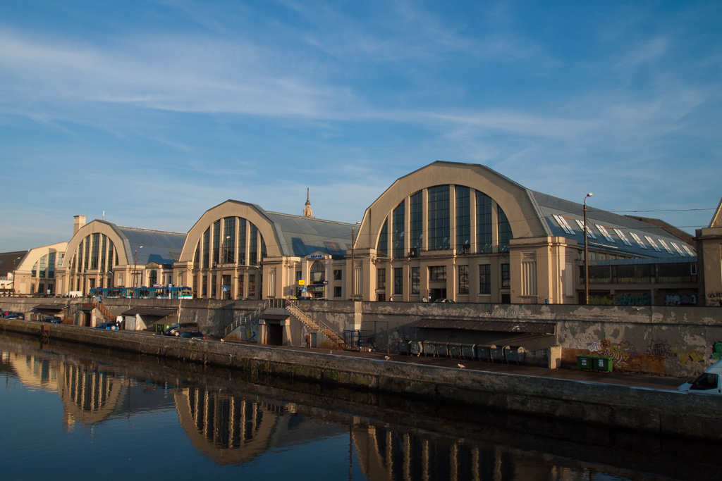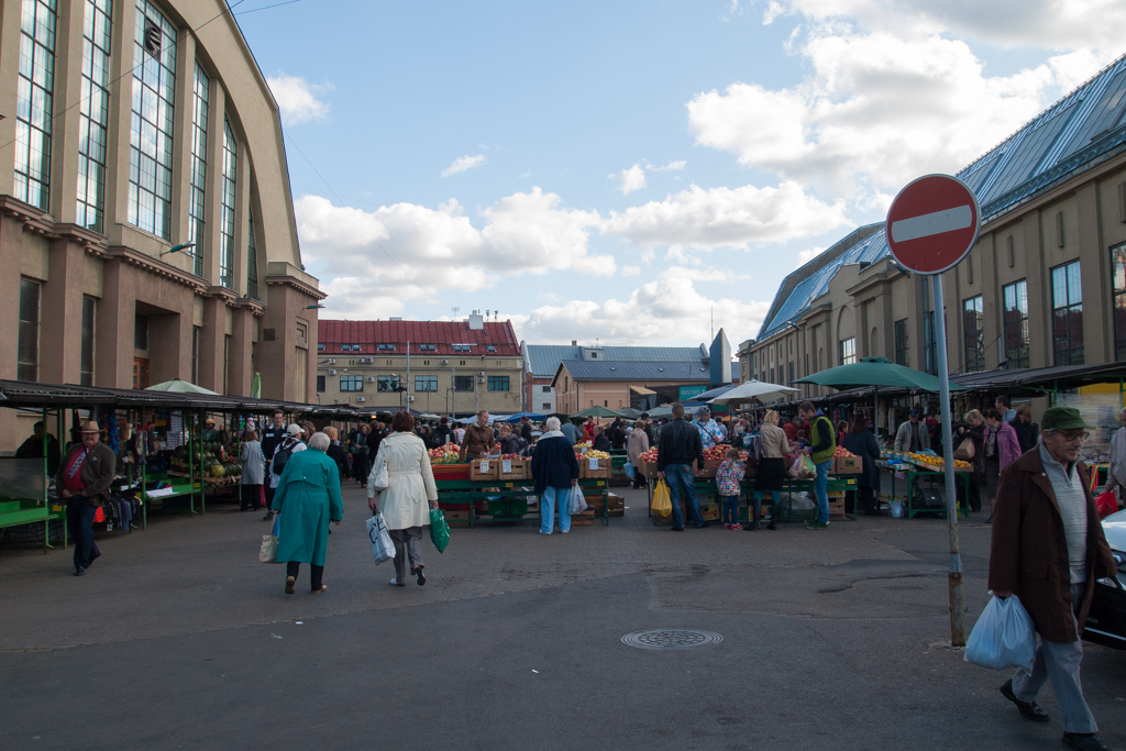 バスターミナルのすぐ隣りには、リガの活気ある中央市場があります。この古い駅舎のような大きな建物が中央市場。写真に写ってる3棟と、向こう側にもう1棟あって、その全部が市場になっているのです。なんと巨大な市場なんでしょう。