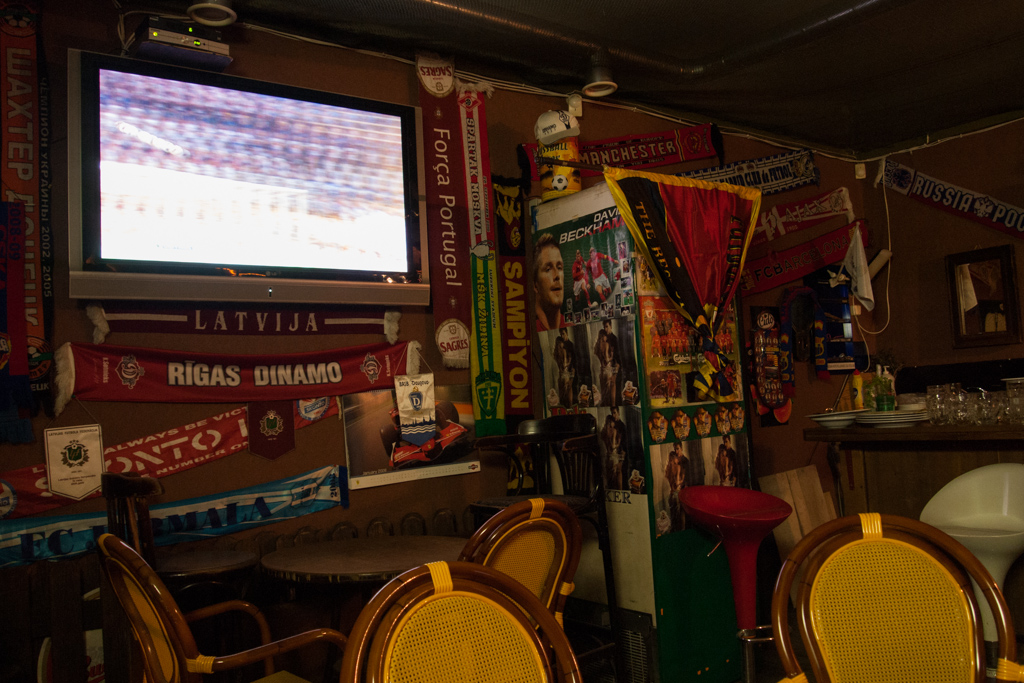 宿の近くにあった場末な雰囲気の飲み屋に立ち寄ってみました。ラトビアでもサッカーが大人気。テレビの中継に夢中になってる若い人たちが、大きな歓声を上げていました。〈続〉