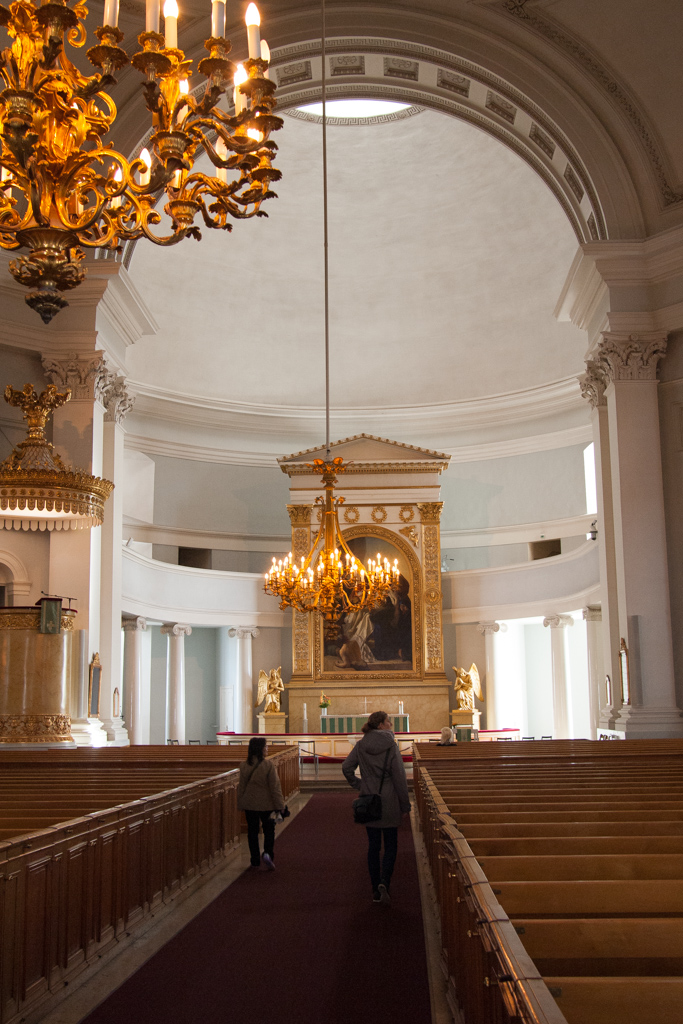 聖堂の内部も無駄がなく、清楚な美しさを讃えています。ヘルシンキ大聖堂は、プロテスタント・ルーテル派の総本山。私にとって海外で最初に見学した教会は、プロテスタント様式のものとなりました。