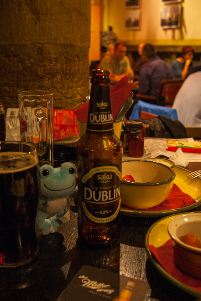 このボトルは「DUBLIN」となってますが、他にも「MANCHESTER」とか「PRAHA」とか都市名が銘柄になってました。(あ、このカエルは日本からの持ち込みですよ 笑)