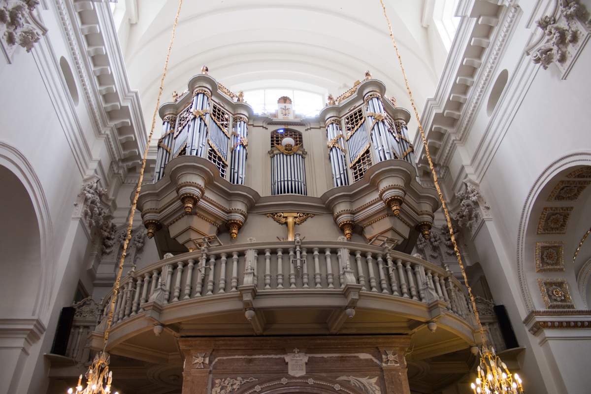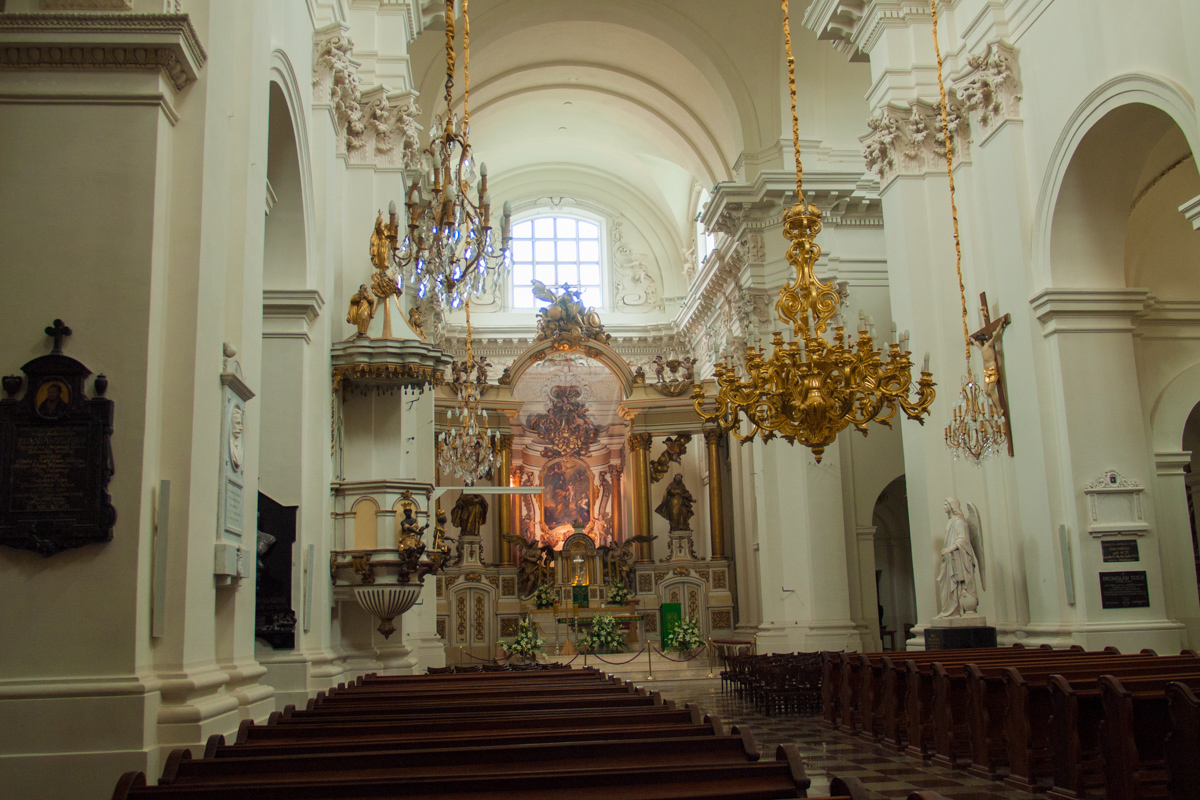 ライオン像の向こうに見えるのが大統領官邸。かつては貴族ラジヴィウ家の館だったそうです。通りがかりで入ってみた教会。あとで調べてみたら、ここは神学校の教会でした。建物自体は再建されたものだと思いますが、学校の歴史は16世紀にさかのぼるようです。